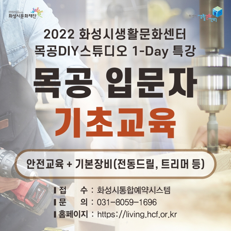 2022년 화성시생활문화센터 목공DIY스튜디오 1-Day 특강 [목공입문자 기초교육 - DIY 입문]