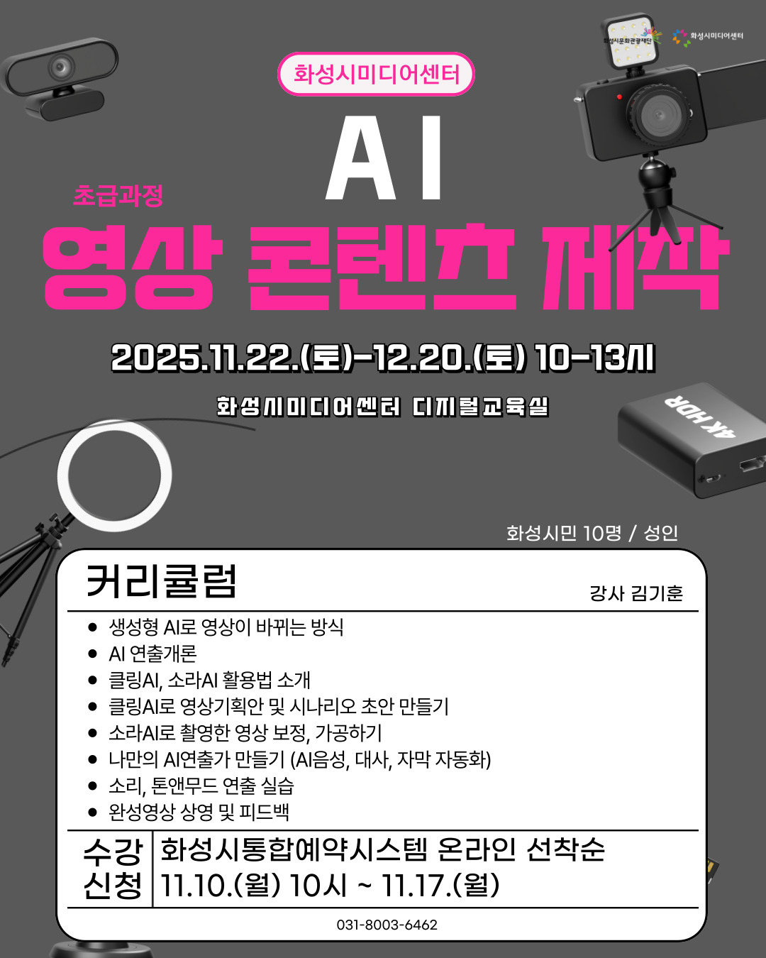 * 노쇼발생시 1년간 화성시미디어센터 무료 교육프로그램 수강에 제한됨을 사전 공지드립니다.
