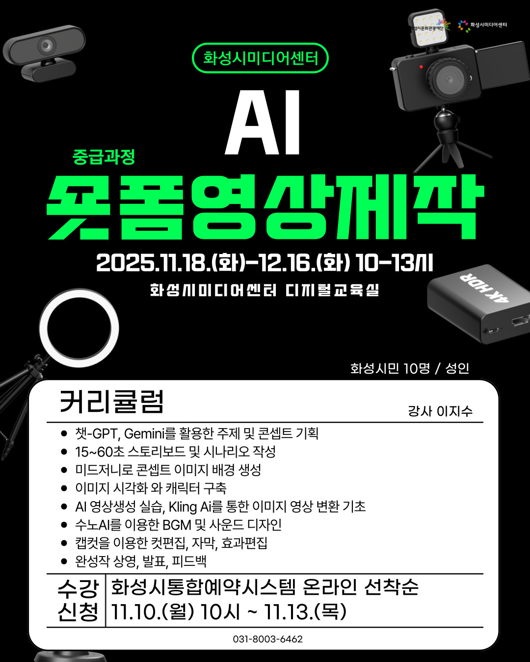 * 노쇼발생시 1년간 화성시미디어센터 무료 교육프로그램 수강에 제한됨을 사전 공지드립니다.