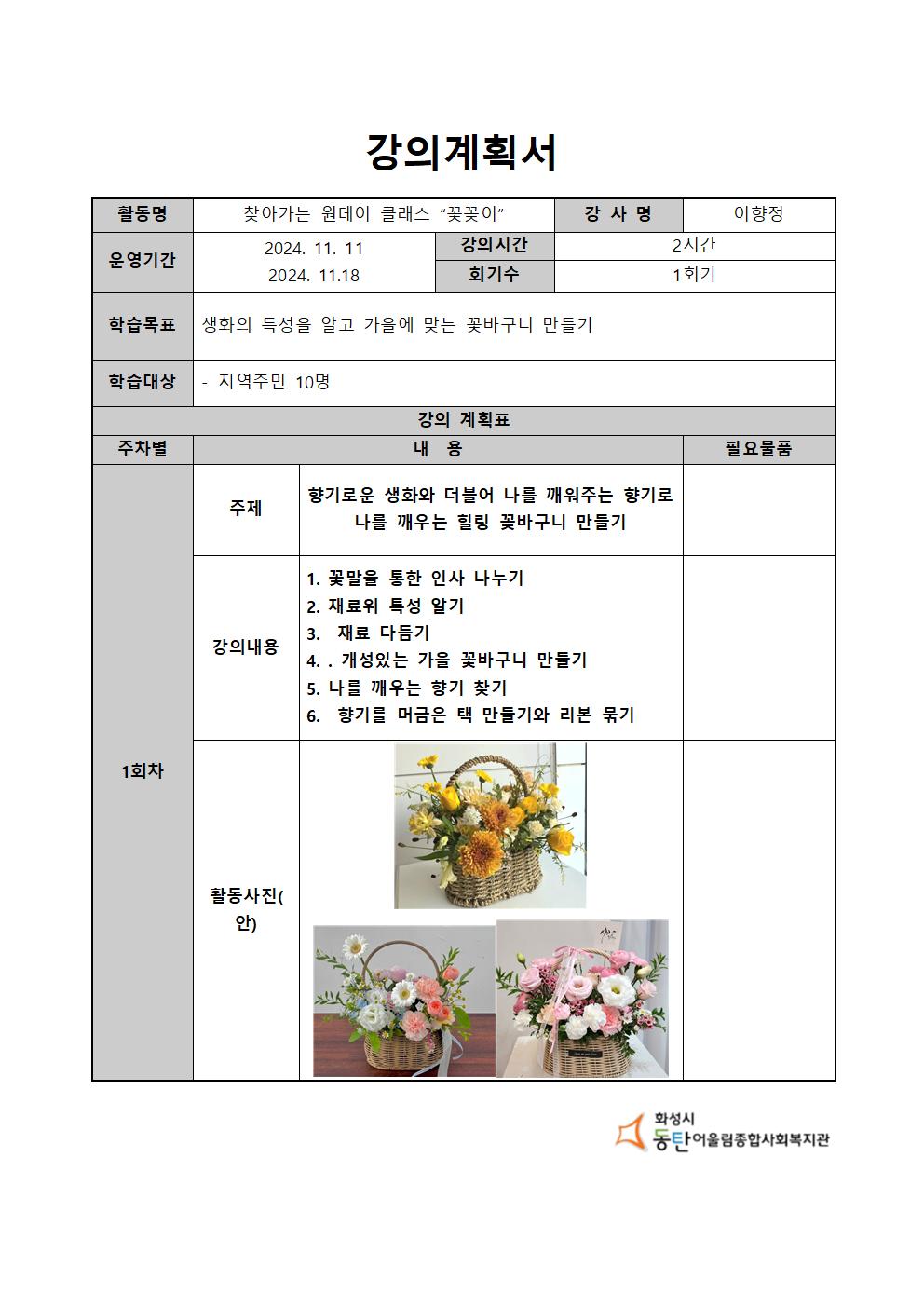 (동탄9동/성인) 11/11(월) 원데이 클래스 꽃꽂이 클래스