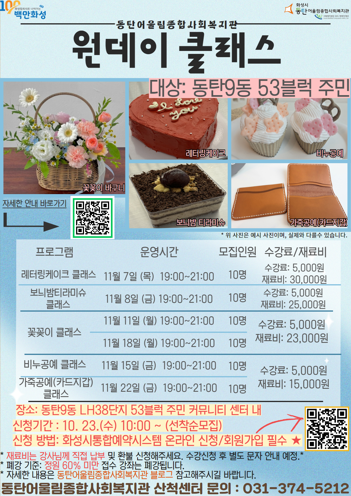 - 재료비: 강사님께 직접 납부 (*수강신청 완료 후 별도 안내 예정*)