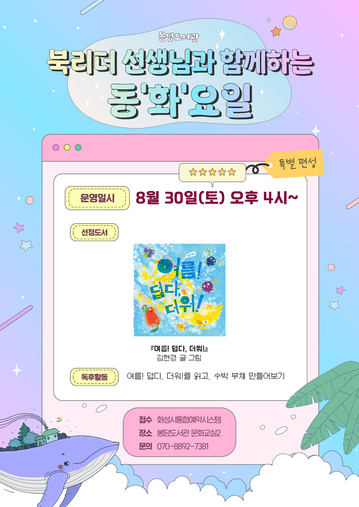 [봉담도서관] 북리더 선생님과 함께하는 동화요일 (8월 30일 토요일★)