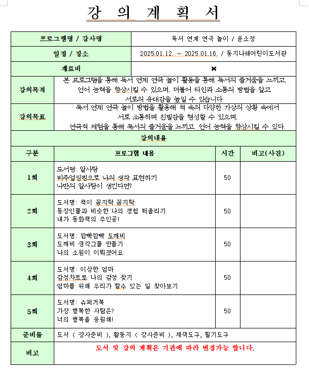 * 강사 및 도서관 사정에 따라 운영 사항이 변경될 수 있습니다.