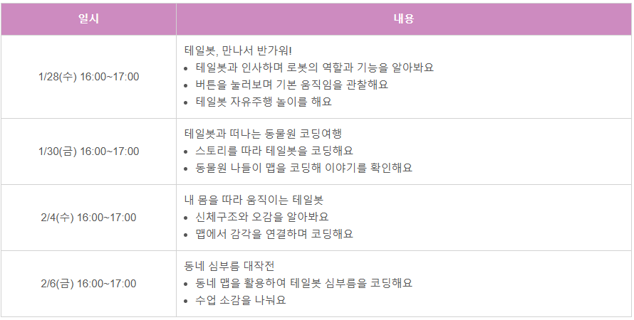 ◈ 운영 일시: 1/28(수), 1/30(금), 2/4(수), 2/6(금) 16:00~17:00