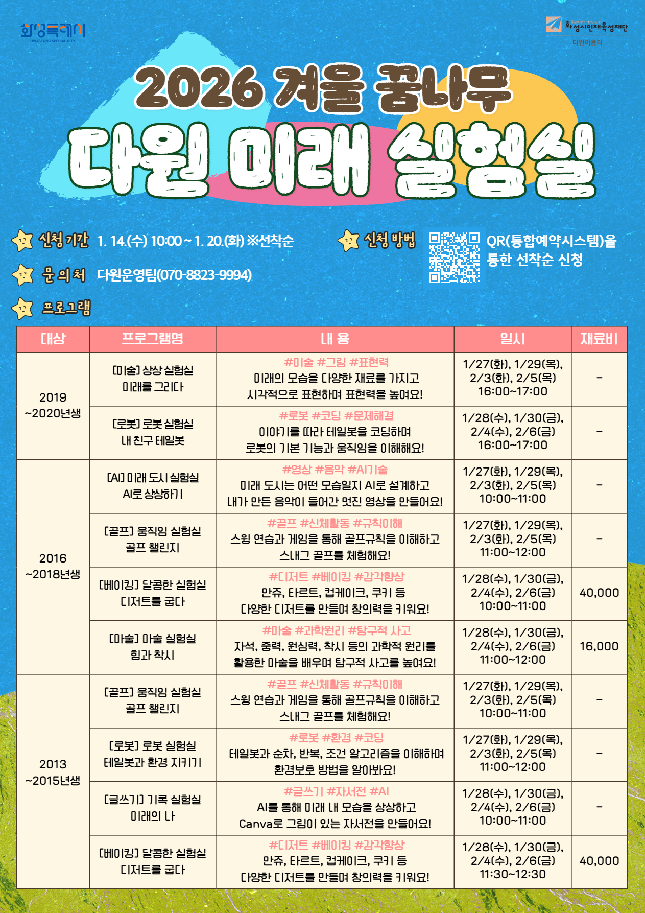 ■ 신청방법: 화성특례시통합예약시스템을 통한 온라인 신청(프로그램에 참여하는 자녀 아이디로 신청)