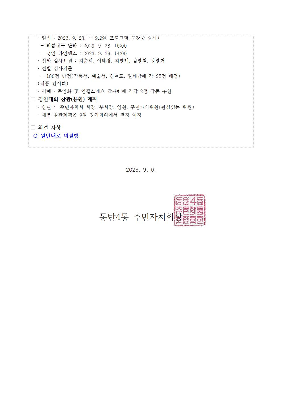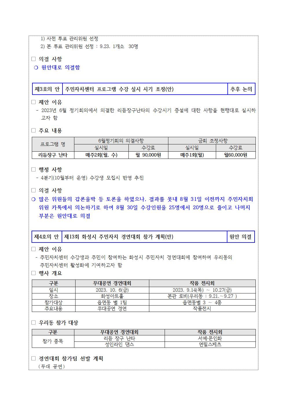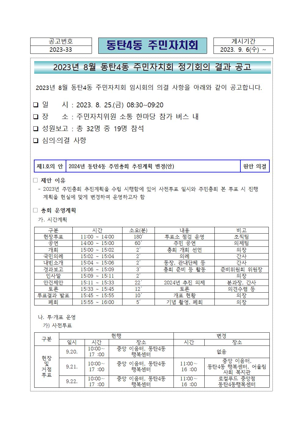 2023년 8월 동탄4동 주민자치회 임시회의 결과 공고!!
