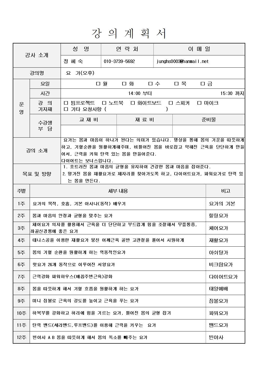- 입금자명 <강좌명/이름>으로 표기하여 입금 바랍니다. 예)요가홍길동