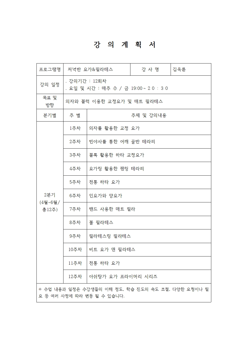 - 정규강좌의 수업일수는 법정(대체)공휴일을 포함한 12주이며 법정(대체)공휴일은 보강하지 않습니다.