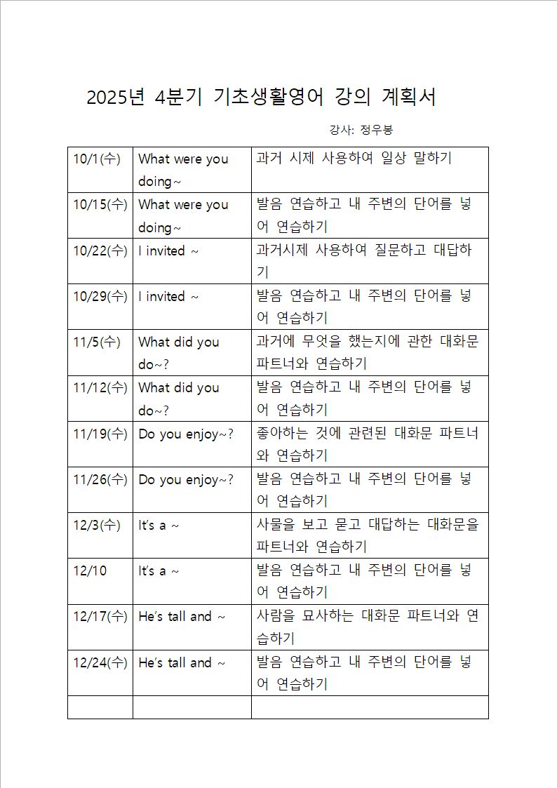 [26년 1분기] 기초생활영어