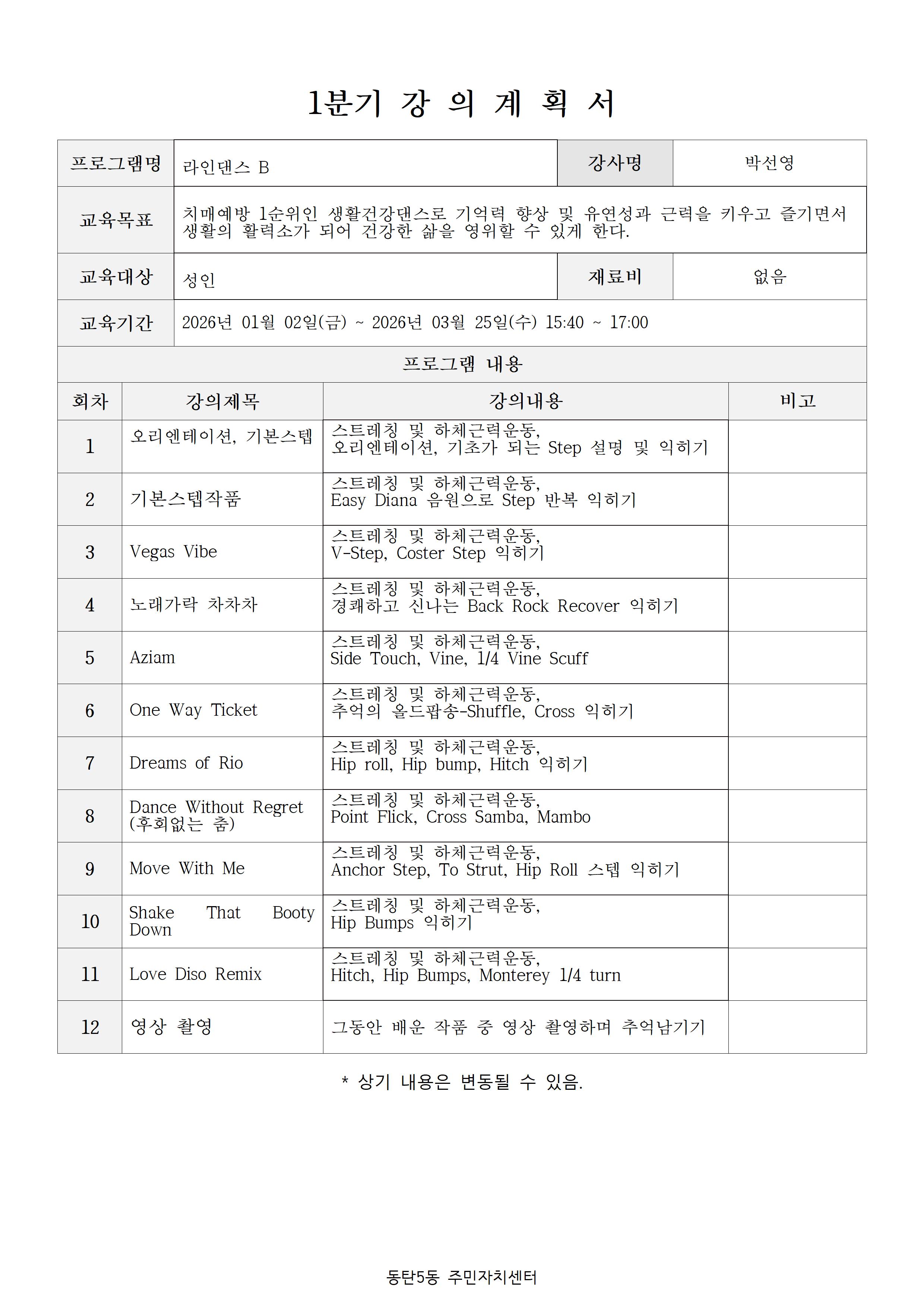 - 2026년 1분기 (1월 15일 이후) 강좌의 취소자는 2026년 2분기 모든 강좌 신청 불가.