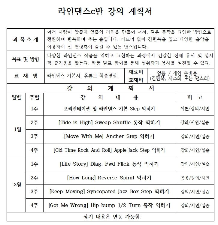 - 프로그램 운영은 강사와 센터 사정에 의해서 변경될 수 있습니다.