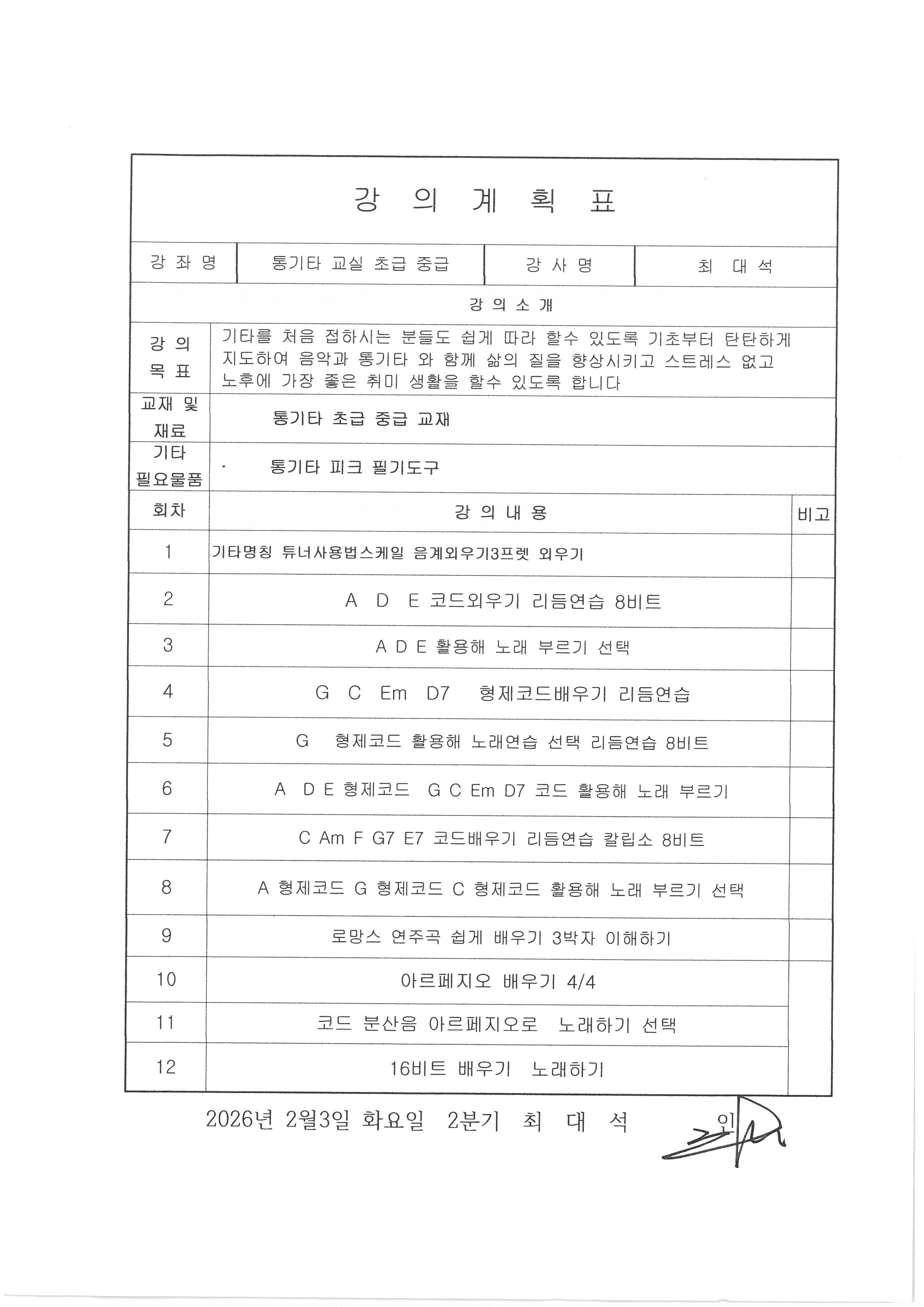 ▣ 강좌명 : 통기타교실(초.중급) / 최대석 강사님