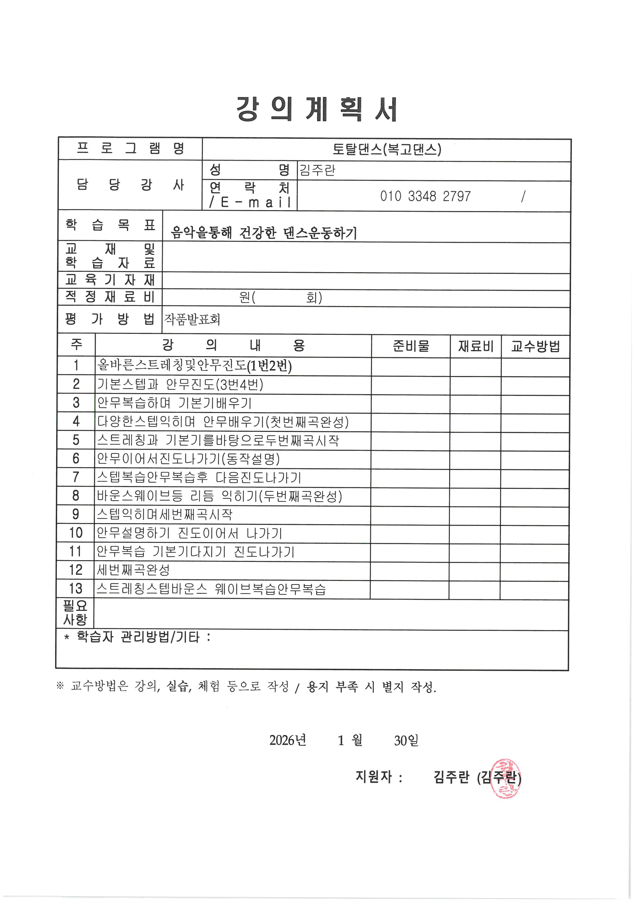 ▣ 강좌명 : 토탈댄스(복고댄스) / 김주란 강사님