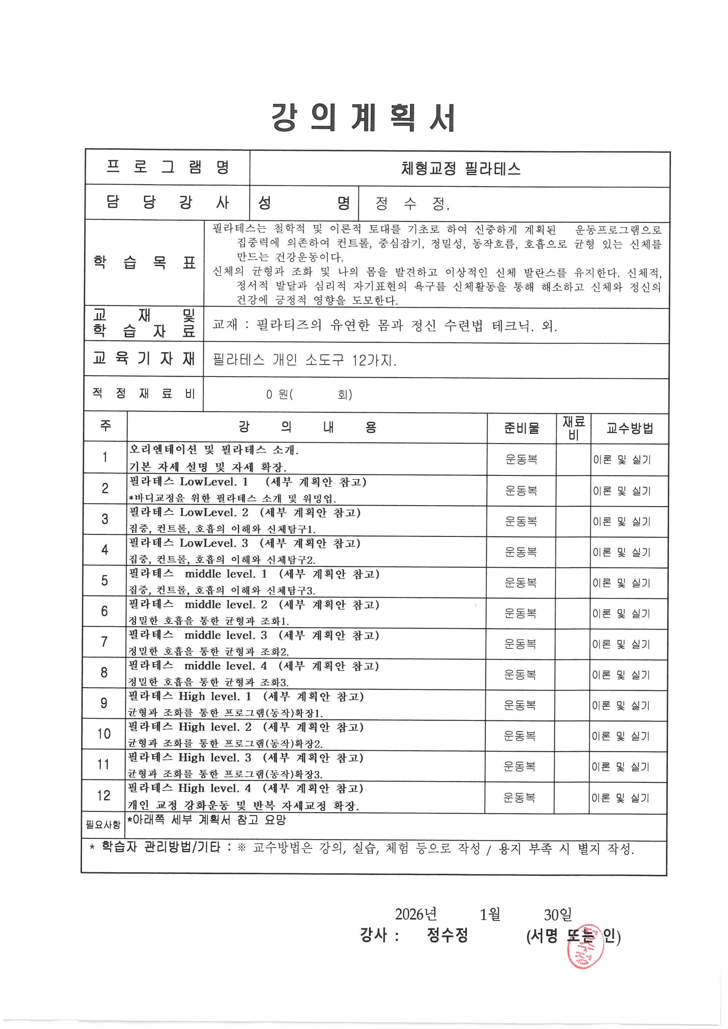 ▣ 강좌명 : 체형교정 필라테스 / 정수정 강사님