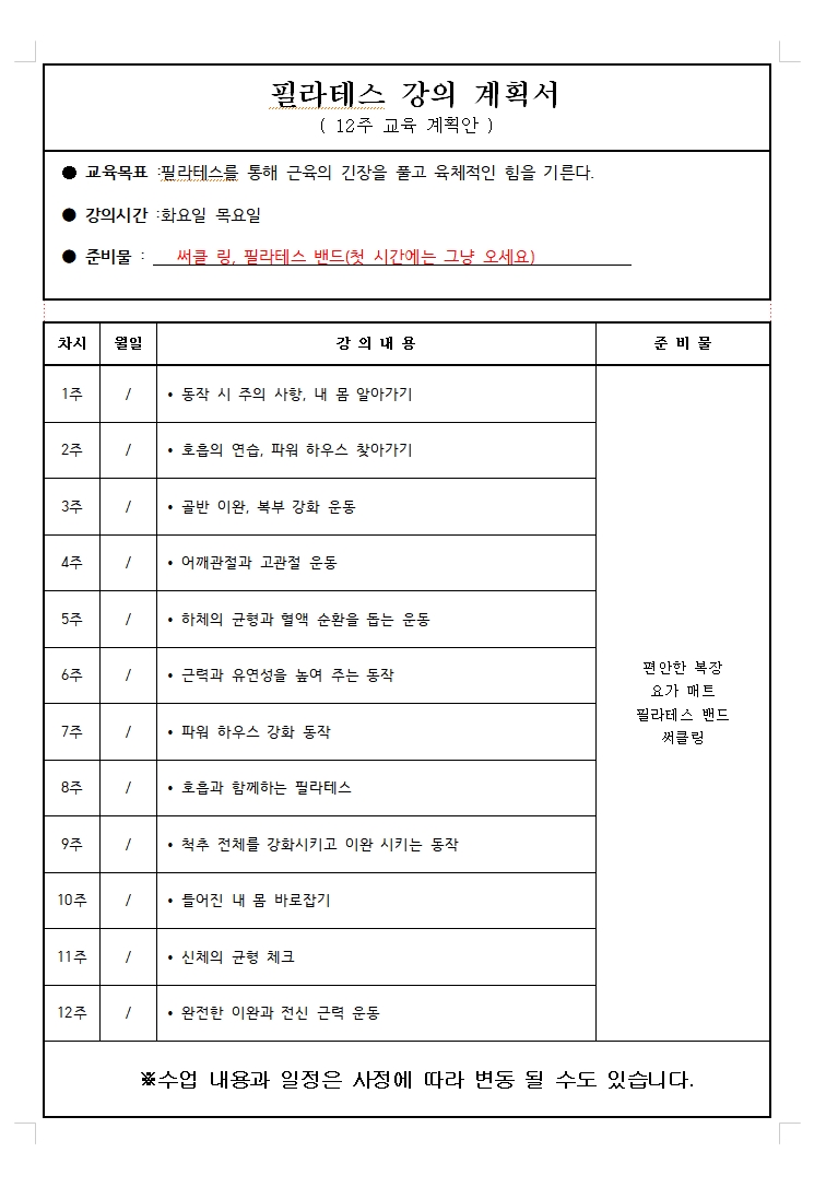 ◈개인준비물 : 매트, 개인수건,편한복장