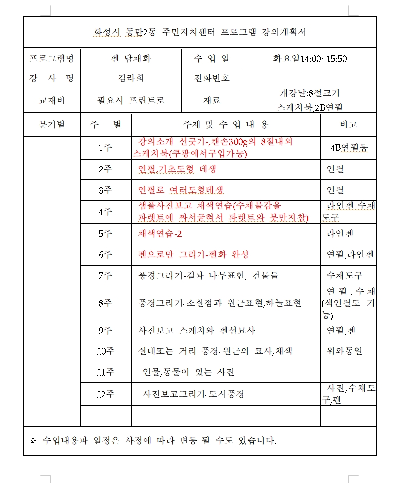 (단, 동 행사로 인한 휴강의 경우에는 추후 보강 수업이 진행될 예정입니다.)