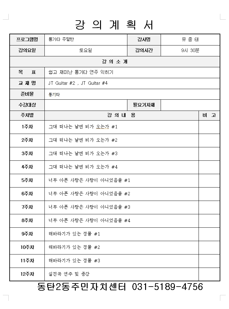 -분기별 12주 수업 / 법정공휴일 휴강이며, 보강은 없습니다.