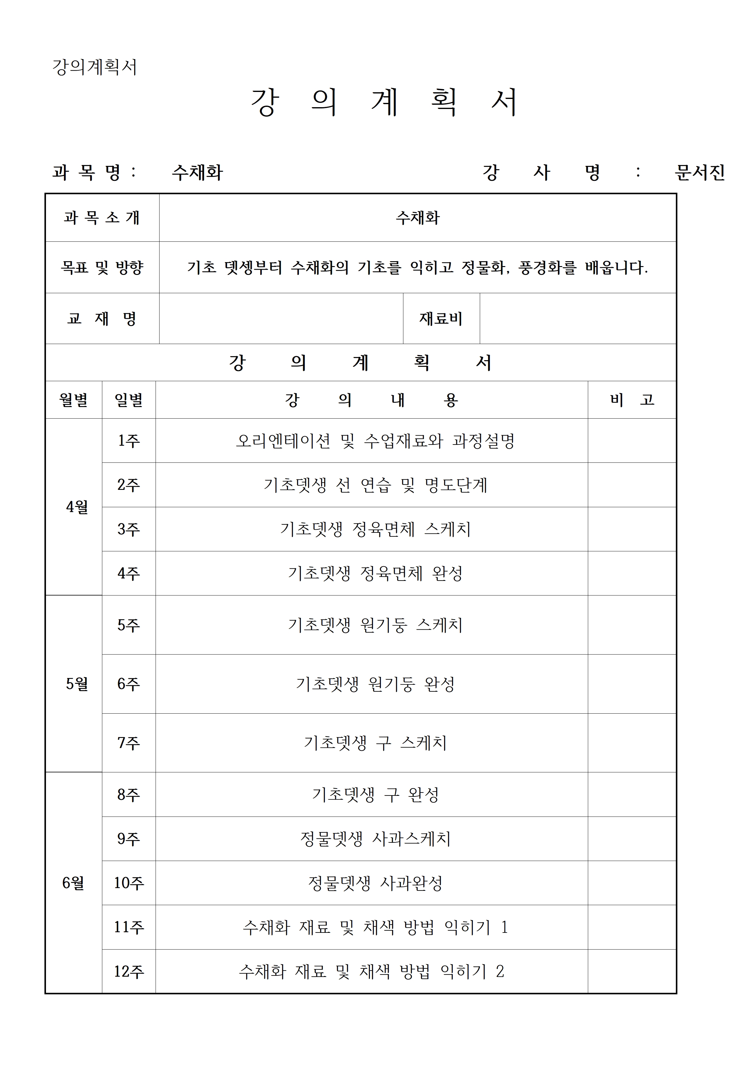 - 5절 스케치북, 4B, 지우개, 수채화도구 개별준비