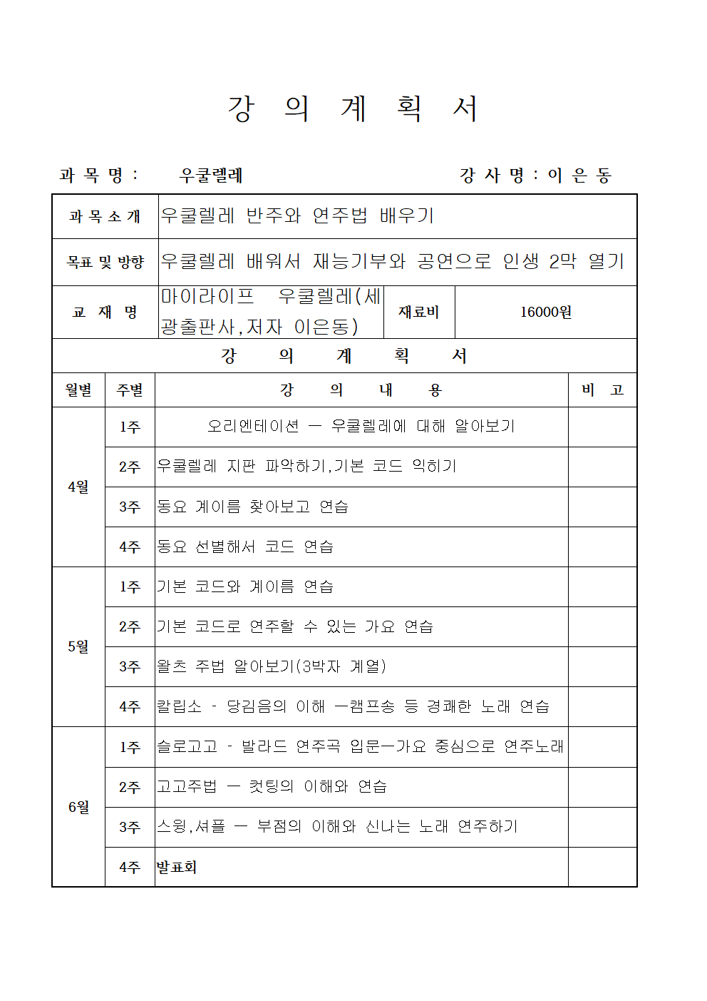 - 강좌별 재료비, 교재비는 별도이며, 수강생 본인 부담입니다.