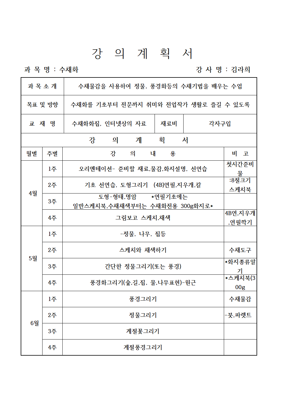 - 강좌별 재료비, 교재비는 별도이며, 수강생 본인 부담입니다.