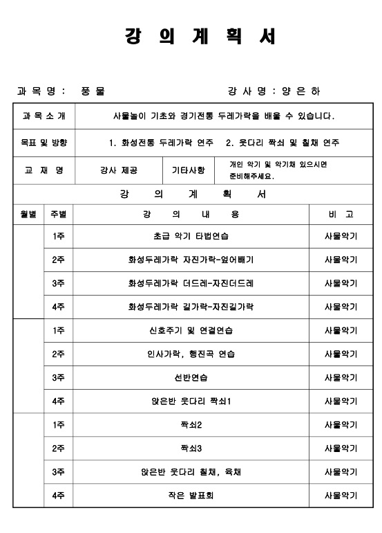 ▣ 강의계획서