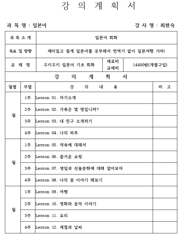 ▣ 강의계획서