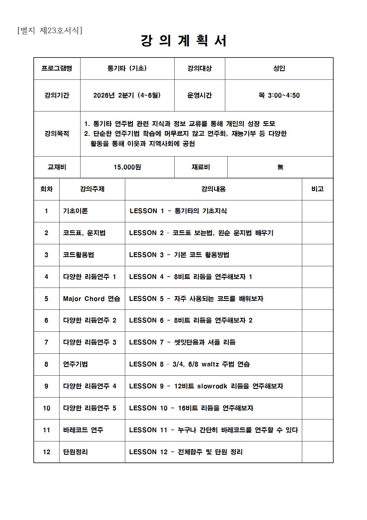 - 강좌별 재료비, 교재비는 별도이며, 수강생 본인 부담입니다.