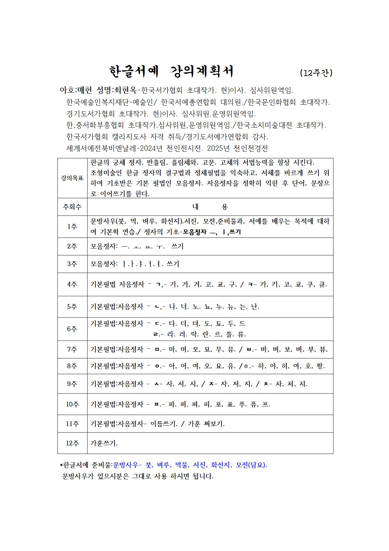 - 원활한 수업을 위해 수강생의 이름과 전화번호는 강사님께 공유됩니다. 이를 원치 않으신 분은 사무실로 연락바랍니다.