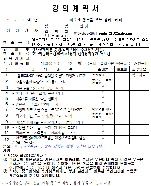 - 교재비 약 18,000원(강사에게 직접 지급)