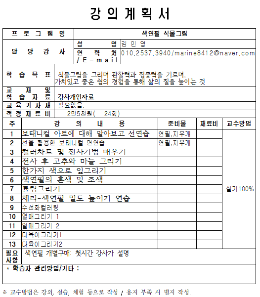 - 첫 강의일에 강사가 고지(약 2만 5천원)