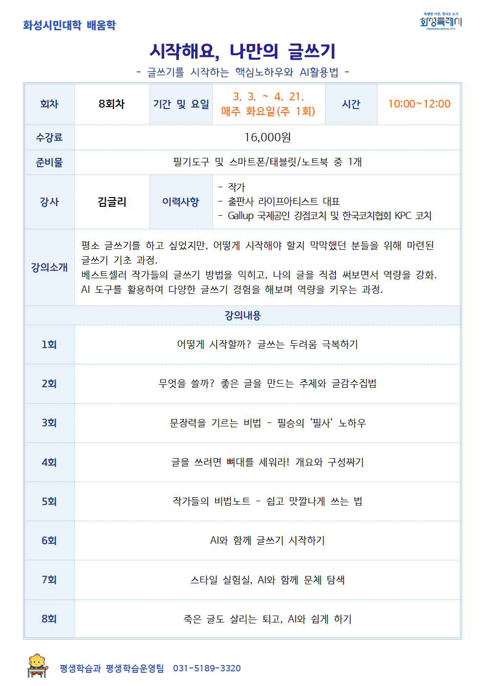 [화성시민대학] 시작해요, 나만의 글쓰기(동탄)