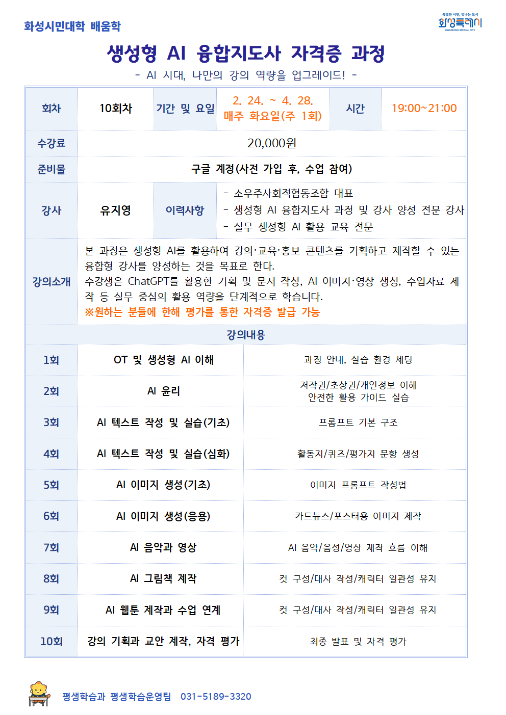 [화성시민대학] 생성형 AI 융합지도사 자격증 과정(동탄)