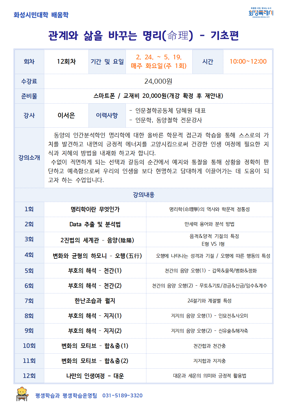 [화성시민대학] 관계와 삶을 바꾸는 명리(命理) - 기초편(봉담)