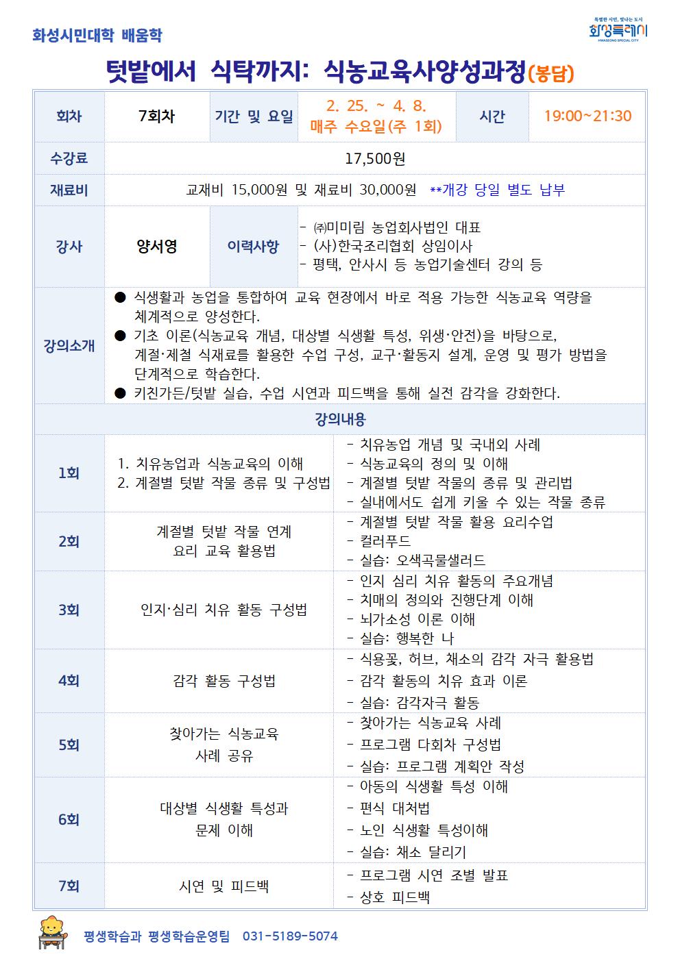 [화성시민대학] 텃밭에서 식탁까지: 식농교육사양성과정(봉담)