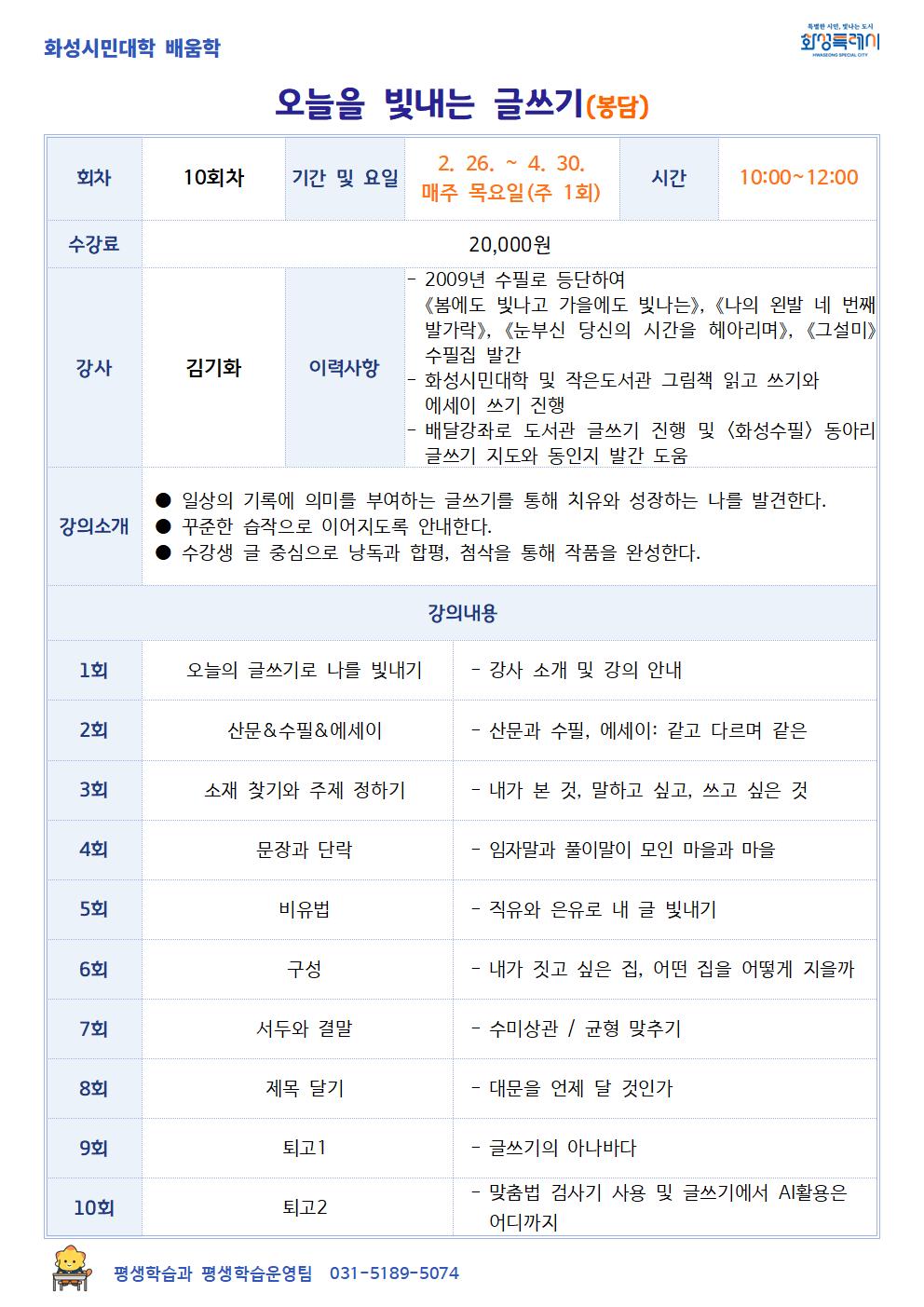 [화성시민대학] 오늘을 빛내는 글쓰기(봉담)