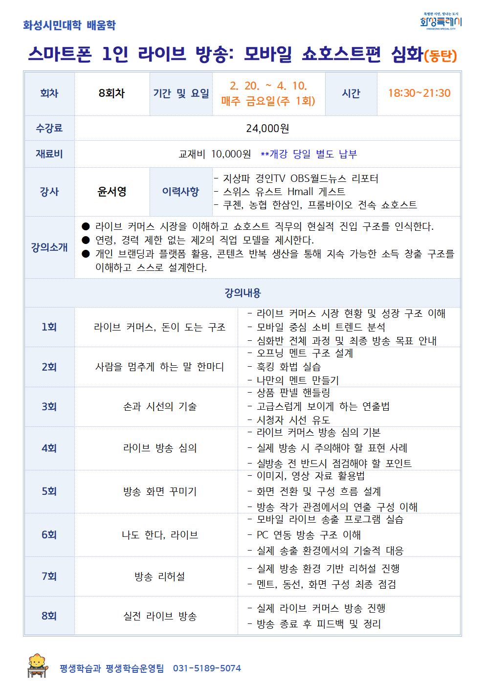 [화성시민대학] 스마트폰 1인 라이브 방송: 모바일 쇼호스트편 심화(동탄)