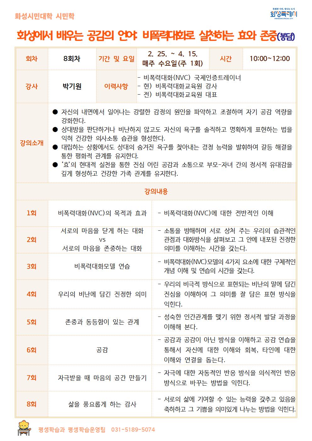 [화성시민대학][시민학] 화성에서 배우는 공감의 언어: 비폭력대화로 실천하는 효와 존중(봉담)