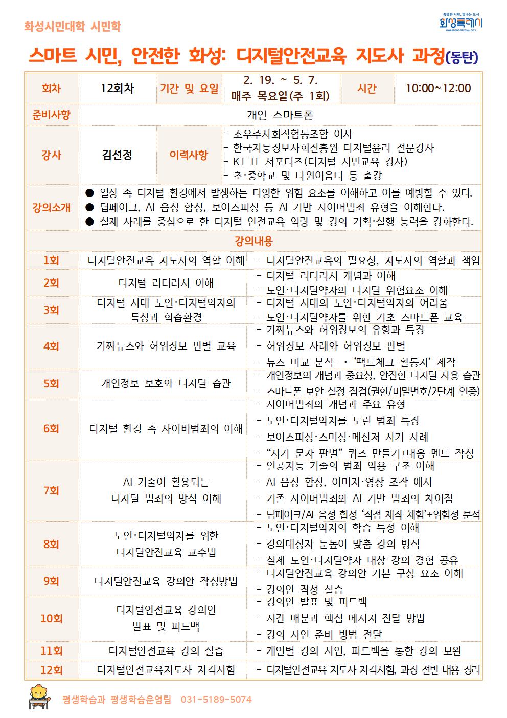 [화성시민대학][시민학] 스마트 시민, 안전한 화성: 디지털안전교육 지도사 과정(동탄)
