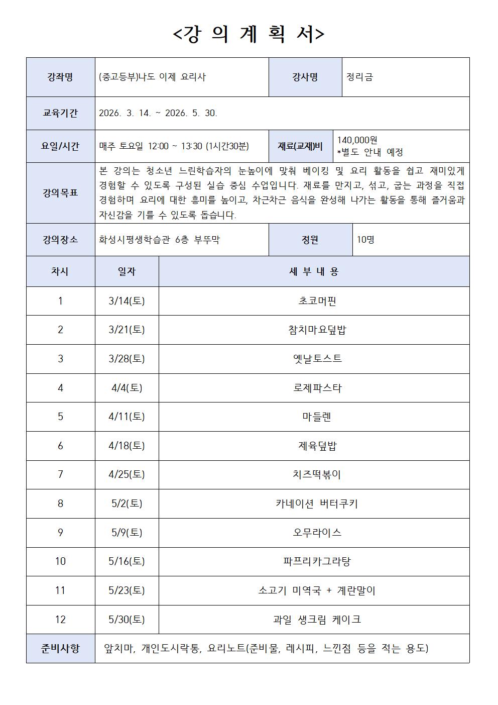 [느린학습자 학습단비] (중고등부) 나도 이제 요리사 (장소: 화성시평생학습관)