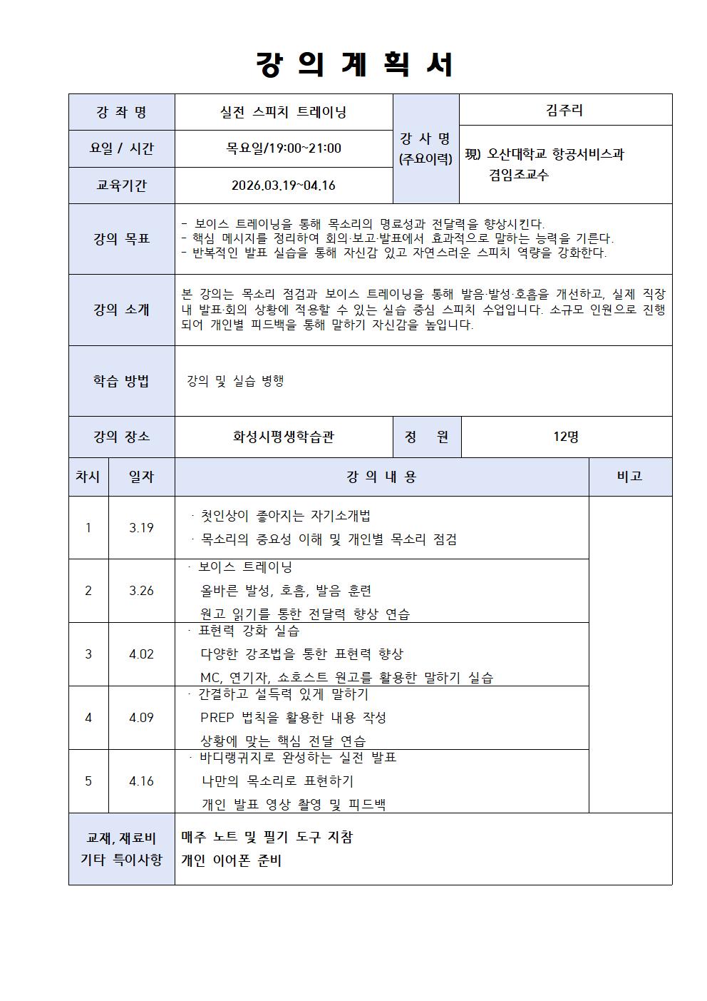[직장인 달빛학교]실전 스피치 트레이닝(장소:동탄)