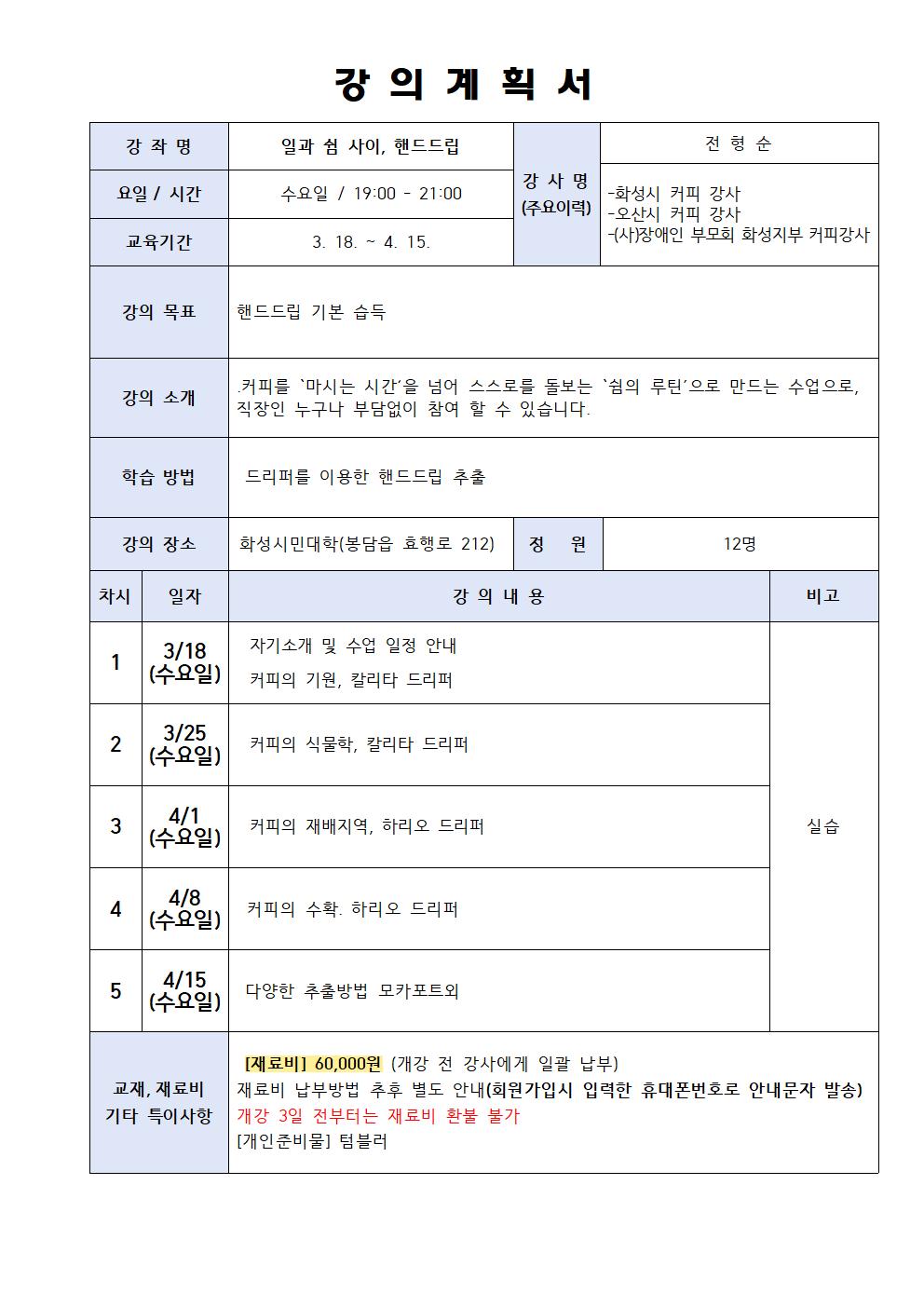 [직장인 달빛학교]일과 쉼 사이, 핸드드립(장소:봉담)
