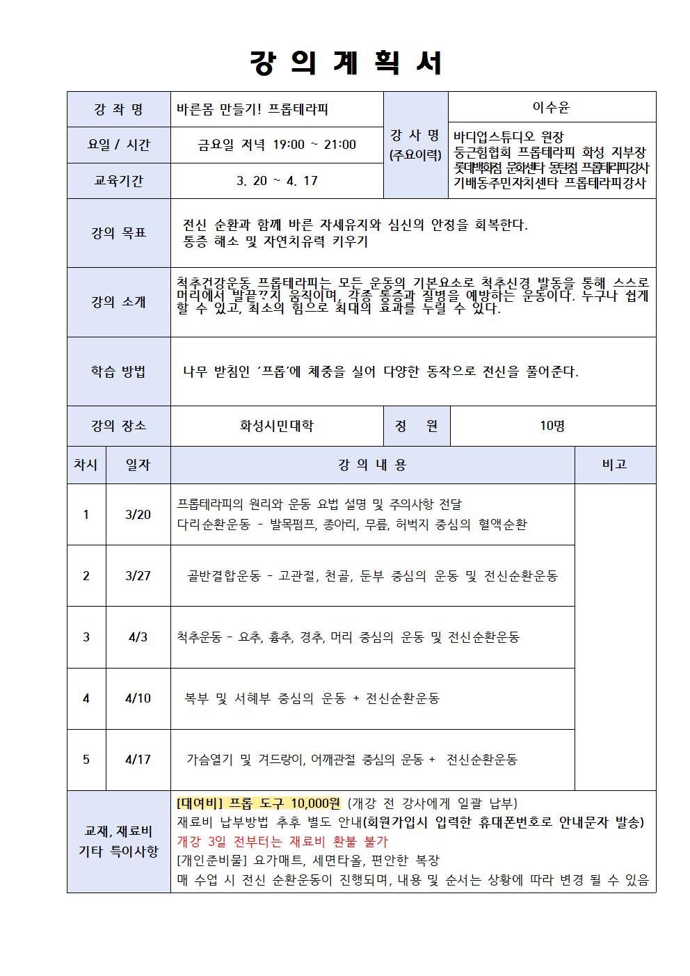 [직장인 달빛학교]바른몸 만들기! 프롭테라피(장소:봉담)