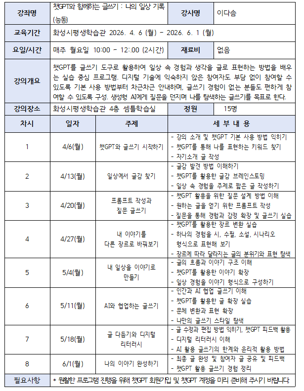 [하모니학교] 챗GPT와 함께하는 글쓰기 : 나의 일상 기록(동탄)