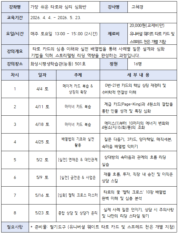 [하모니학교] 가장 쉬운 타로와 심리 심화반(동탄)