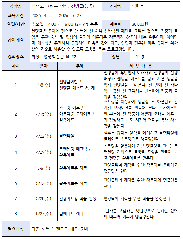 [하모니학교] 펜으로 그리는 명상, 젠탱글(동탄)