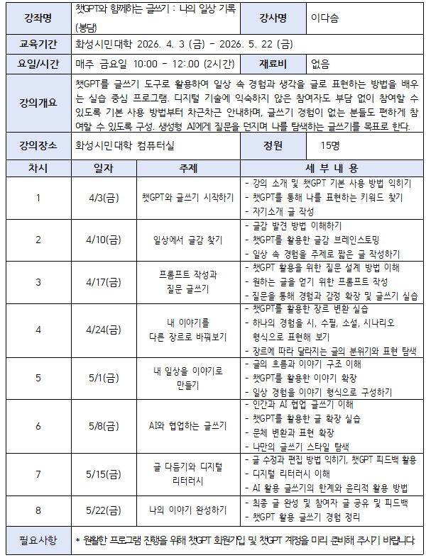 [하모니학교] 챗GPT와 함께하는 글쓰기 : 나의 일상 기록(봉담)