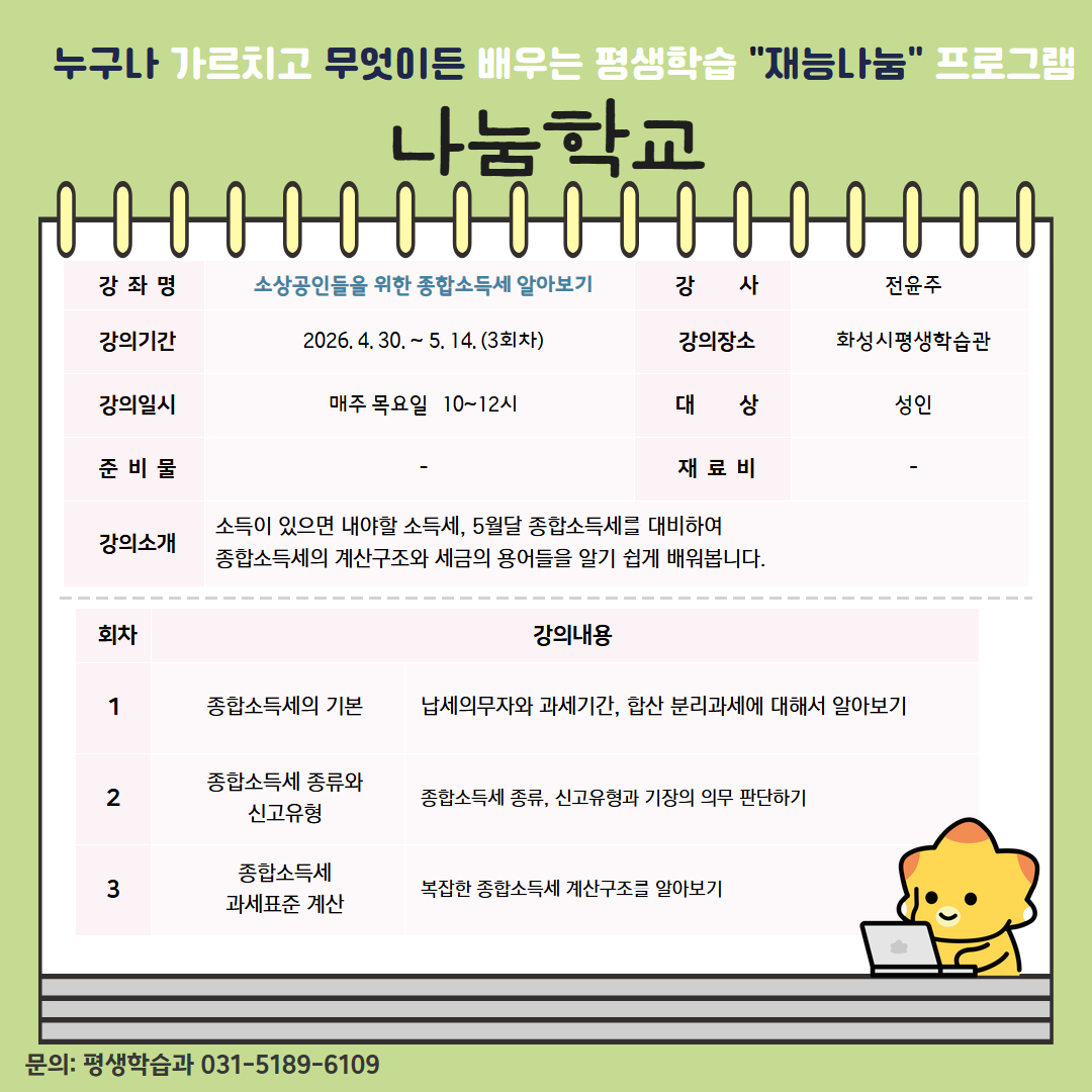 [나눔학교] 소상공인들을 위한 종합소득세 알아보기(장소: 동탄)