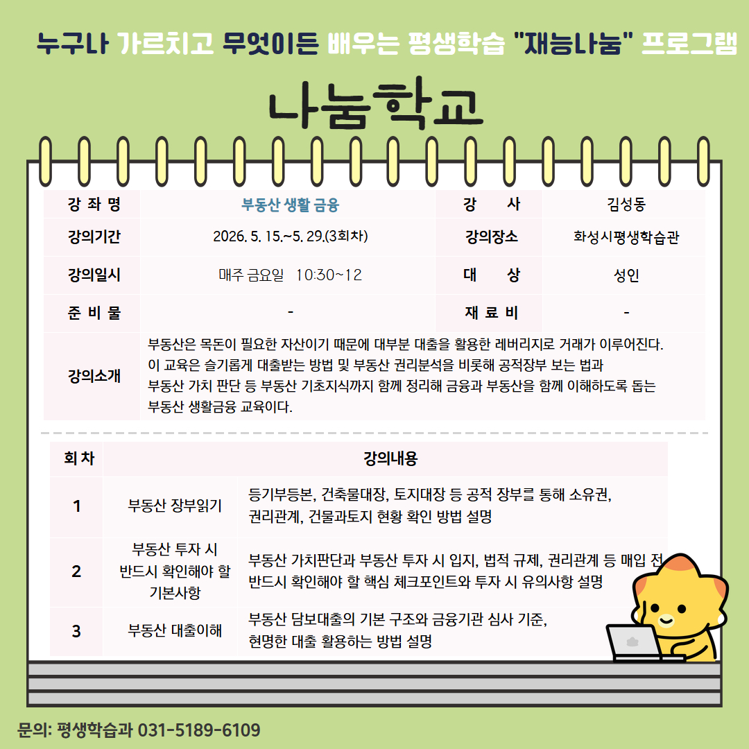 [나눔학교] 부동산 생활 금융(장소: 동탄)