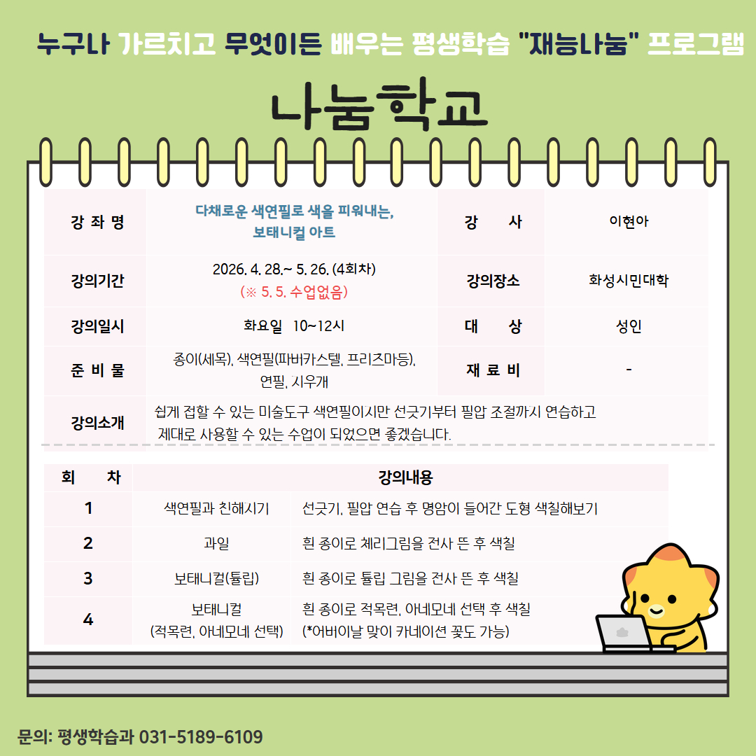 [나눔학교] 다채로운 색연필로 색을 피워내는, 보태니컬 아트(봉담)