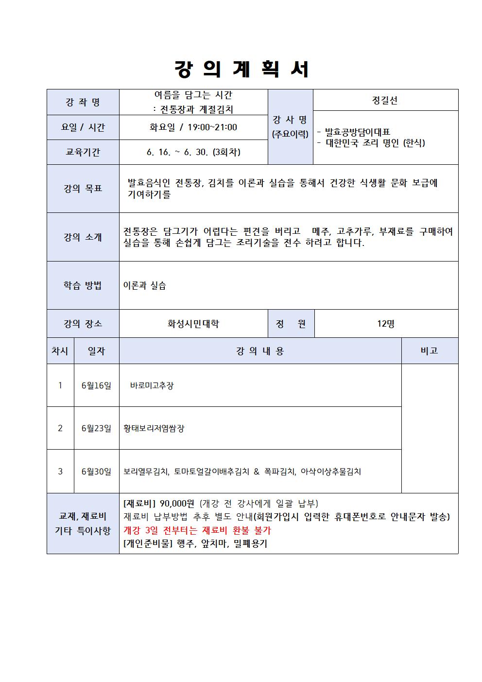 [직장인 달빛학교]여름을 담그는 시간: 전통장과 계절김치(장소:봉담)